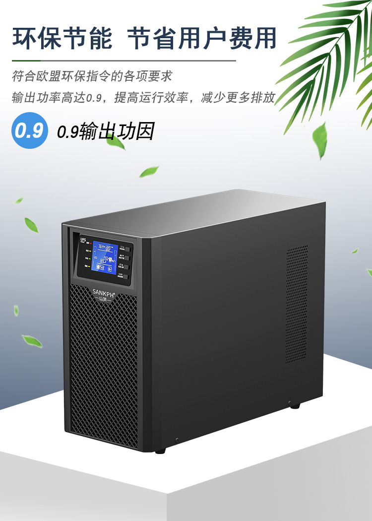 3.適應(yīng)各種電網(wǎng)環(huán)、輸出功因0.8,適合負(fù)載的發(fā)展趨勢(shì),實(shí)現(xiàn)更強(qiáng)的帶載能力,整機(jī)效率高達(dá)90%,降低UPS的電力耗損,節(jié)約客戶(hù)的成本。