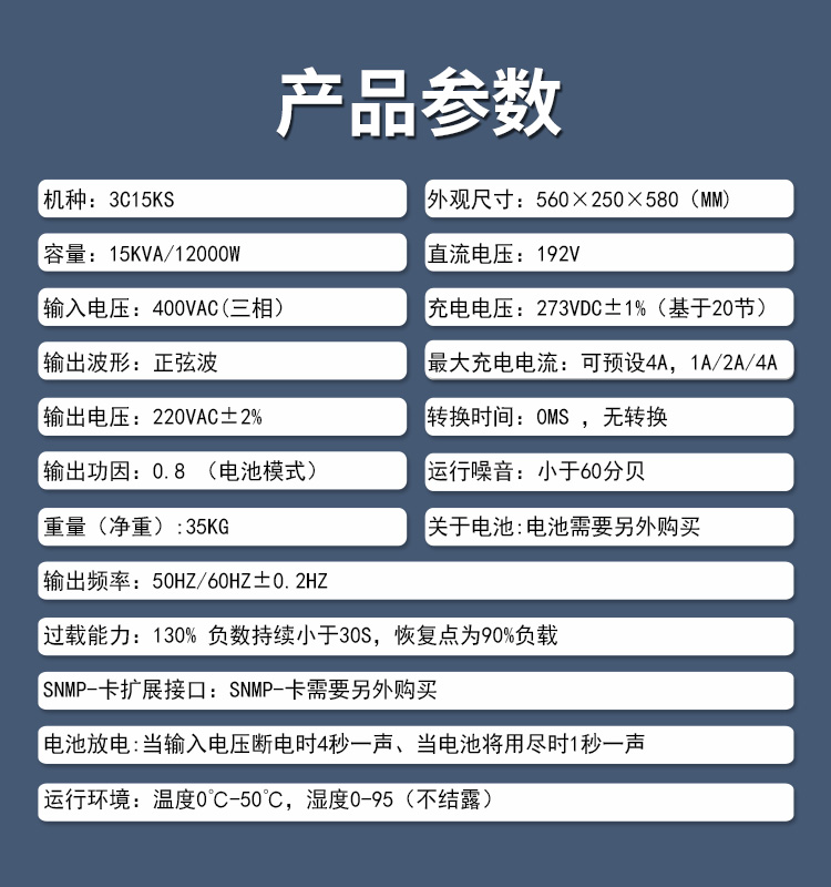 【電 池】【ups尺寸】:560X250X580(毫米) 需外接電池192V