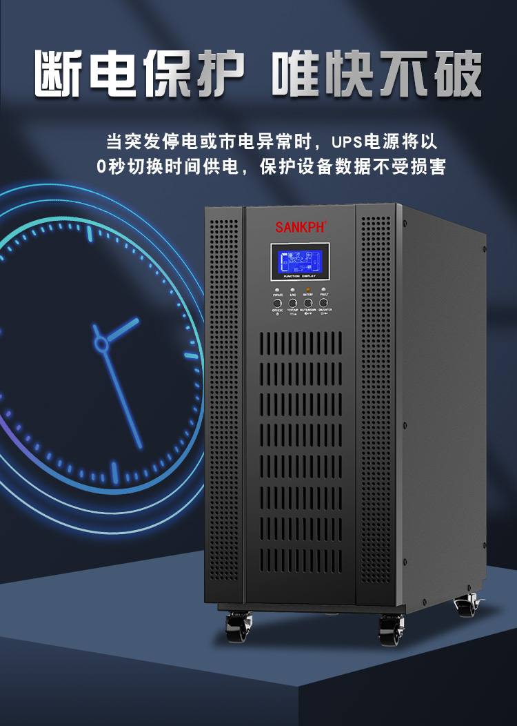 3.適應(yīng)各種電網(wǎng)環(huán)、輸出功因0.8,適合負(fù)載的發(fā)展趨勢,實(shí)現(xiàn)更強(qiáng)的帶載能力,整機(jī)效率高達(dá)90%,降低UPS的電力耗損,節(jié)約客戶的成本。