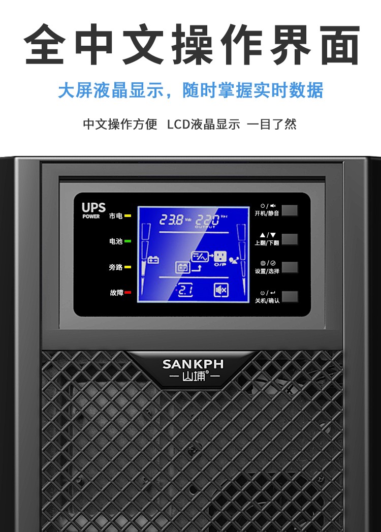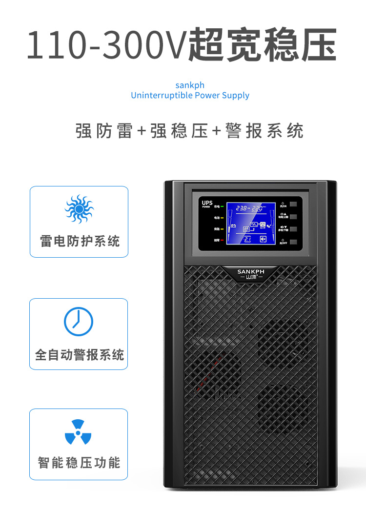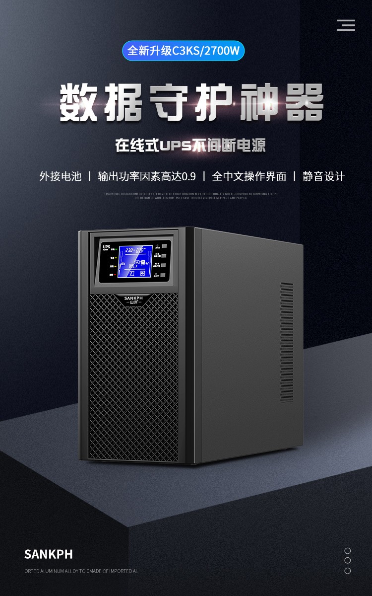 【型 號】SP3KS 3KVA/2700W UPS電源 在線式 外接電池,可負(fù)載12臺電腦