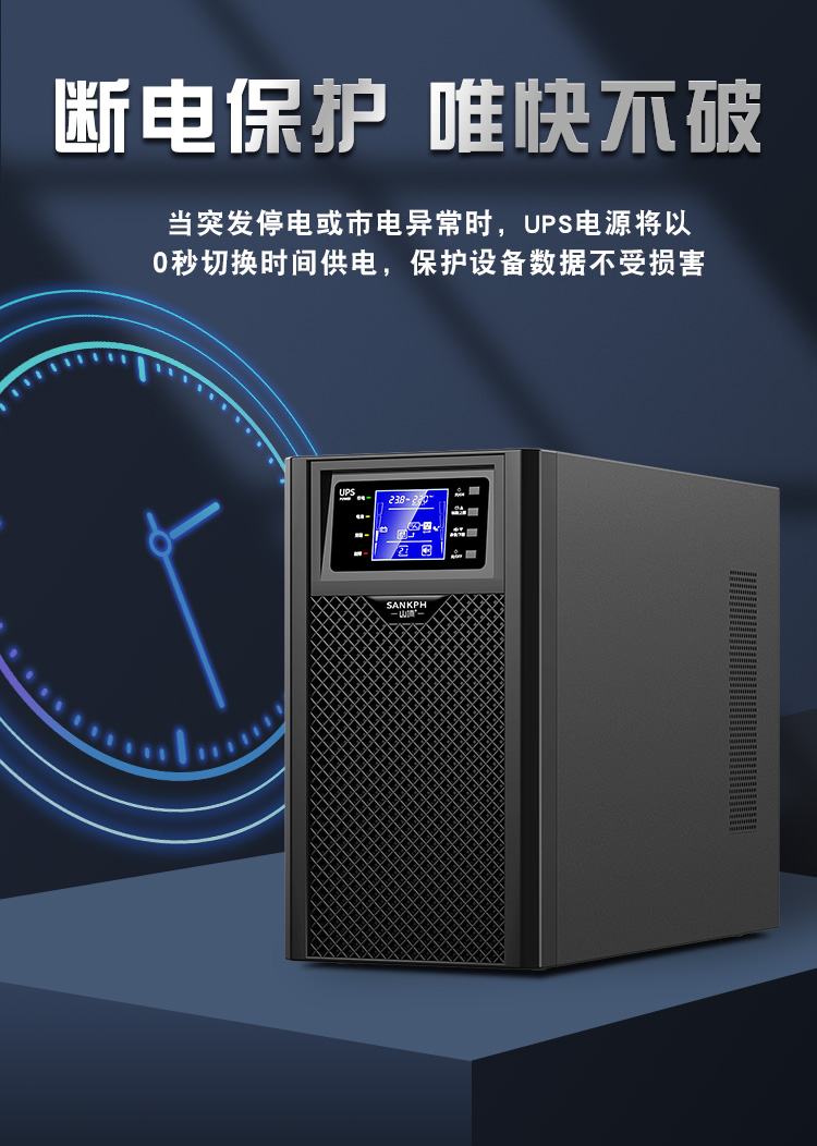 3.適應(yīng)各種電網(wǎng)環(huán)、輸出功因0.8,適合負(fù)載的發(fā)展趨勢,實現(xiàn)更強的帶載能力,整機效率高達(dá)90%,降低UPS的電力耗損,節(jié)約客戶的成本。