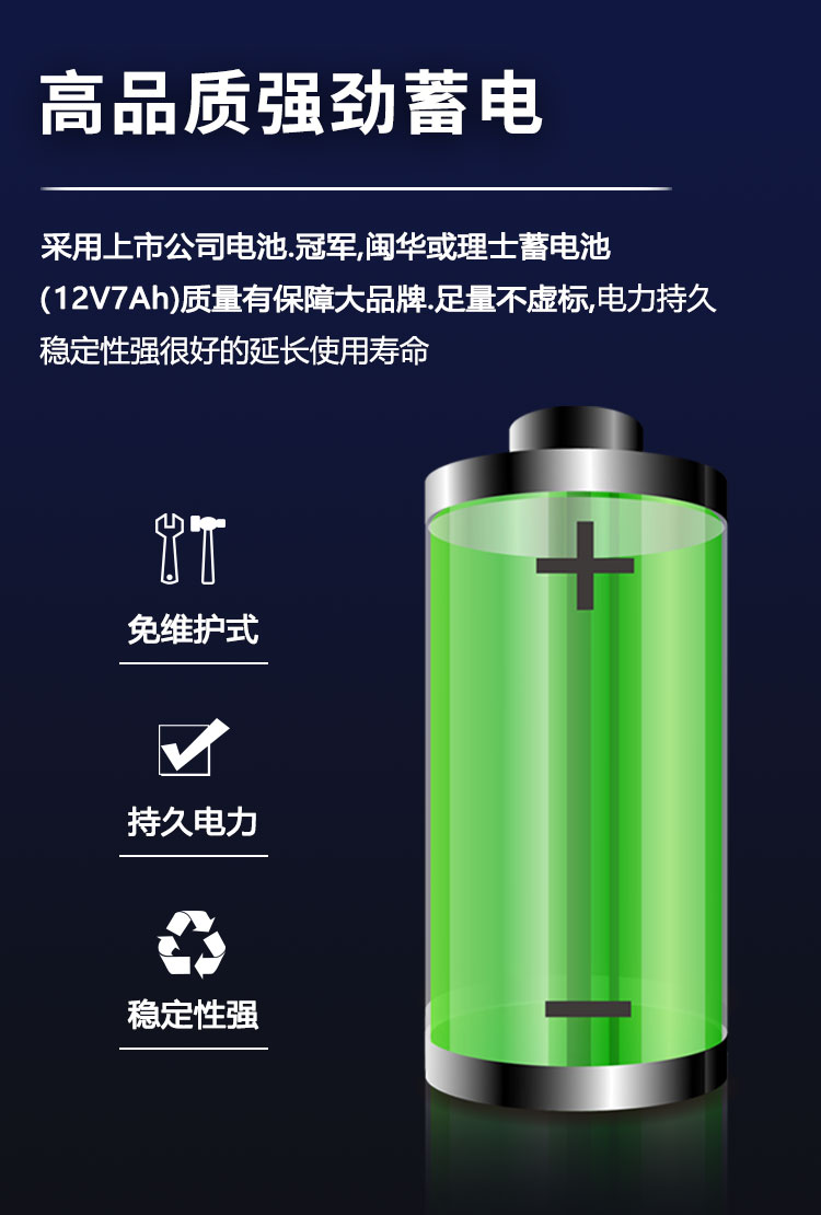 6.智能管理、采用先進的智能化充電控制方式,根據(jù)電池類型和電池和使用狀態(tài)來選擇最優(yōu)充電方式。確保電池的使用壽命得以延長。并定期對電池做充放電管理等