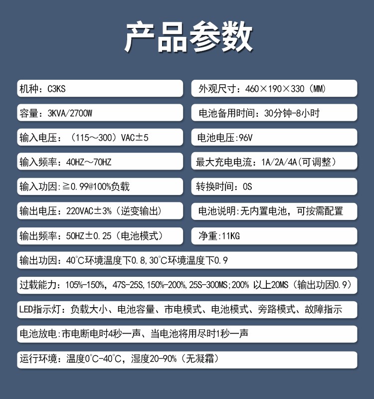 【功 率】3000VA/2700W 主機尺寸:450*192*330mm